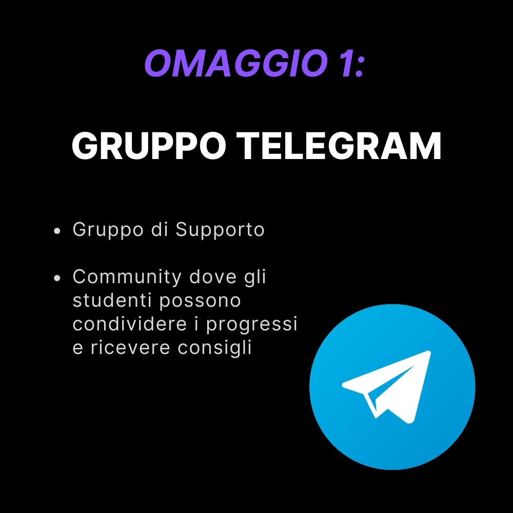 - ✔ Supporto tecnico (gruppo Telegram dedicato agli studenti)